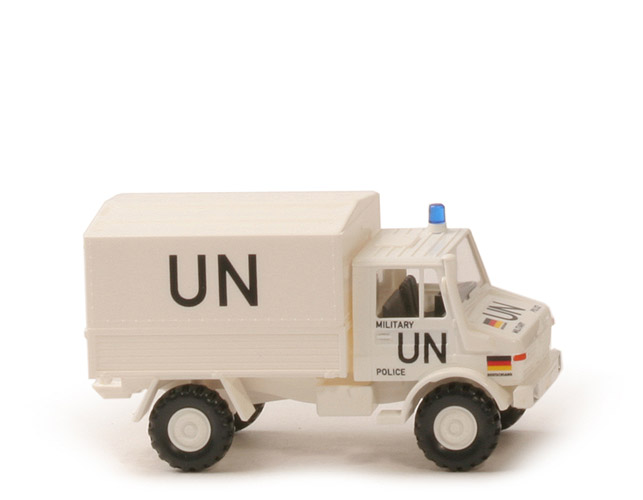 Farbe Kabine | weiß | Warnlicht | blautransparent. auf Sockel weiß | Verglasung | klar | Inneneinrichtung | schwarz | Lenkrad | integriert | angesetzter Ansaugstutzen | weiß | Kotflügel vorne/Grill | weiß | Kotflügel hinten | weiß | Chassis | weiß | Bodenprägung | neues WIKING-Logo, Germany | Auspuffrohr | mit | Kardanelement Farbe | weiß | Pritsche | weiß | Pritscheneinlage | ohne (!) | Plane | weiß | Bedruckung Scheinwerfer | silbern | Bedruckung Motorhaube | "UN", Deutschlandfahne, "Military Police" | Bedruckung Blinker vorne | orange | Bedruckung Motorhaube seitlich | Deutschlandfahne, "Deutschland" | Bedruckung Türen | "UN", "Military Police" | Bedruckung Plane | "UN" | Räder | schwarz, 12 mm, grobstollig, separate Felgen | Felgen | 8-Loch, weiß |