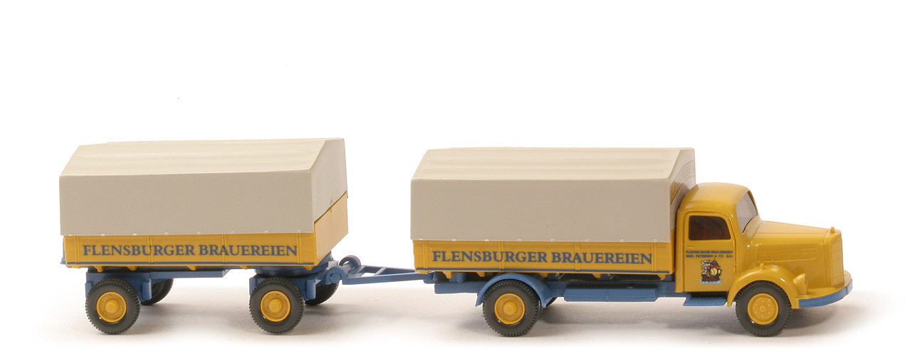 Collect & Invest (21): "Ein Mercedes-Benz Lastzug der Flensburger Brauerei Emil Petersen GmbH & Co. KG. Im Einsatz auf den Straßen Schleswig-Holsteins in den 50er/60er Jahren."