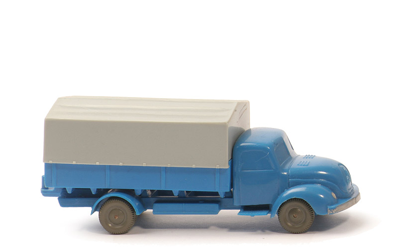 Achsen | Rollachser | Version Kabine | Typ 1a | Kabine unten | mit Bohrungen | Farbe Kabine u. Chassis | lichtblau | Verstärkung Trittbretter | mit | Bemalung Kabine | Scheinwerfer, Stoßstange | Chassis Farbe | himmelblau | Version Chassis | Version 1b | Bodenprägung | WM im Kreis | Pritsche | Seiten glatt | Farbe Pritsche | himmelblau | Zughaken | nach oben | Zapfen | Flachzapfen | Kennzeichen | unbemalt | Befestigung Pritsche | geklebt | Plane | ca. silbergrau | Räder | 10mm, mit Profil |