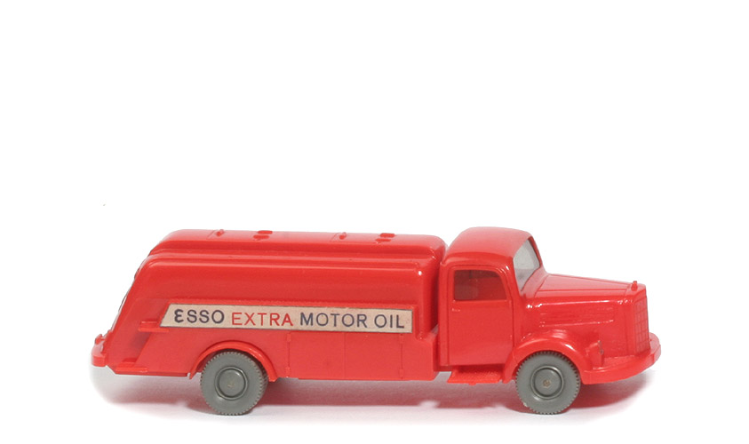 | Farbe Kabine | orangerot | | Blinker | ohne | | Verglasung | getönt | | Bemalung | Scheinwerfer | | Version Chassis | Version 2 | | Achshalterungen | geschlossen | | Chassis Farbe | orangerot | | Chassis Bodenprägung | WM (ohne Kreis) | | Chassisplatte Farbe | orangerot | | Chassisplatte Prägung | WM und Wiking | | Chassisplatte Grösse | Typ 3 (Fläche 10 x 15mm) | | Tank | orangerot | | Beschriftung | ESSO... (s. Foto) | | Beschriftung Seite | Papieraufkleber | | Beschriftung Heck | Papieraufkleber | | Schrift EXTRA | in rot | | Bemalung hinteres Nrn.-Schild | silbern | | Räder | 10mm, neuere Ausführung |
