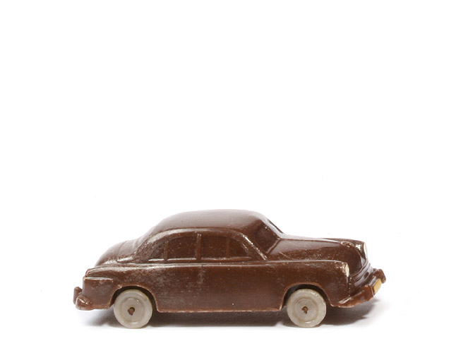 Achsen | Drahtachser | Farbe Karosserie | schokobraun | Naht Unterseite | ohne | Bodenprägung | ohne | Bemalung Scheinwerfer | weiß | Bemalung Kennzeichen vorne | gelb | Bemalung Stoßstange vorne | ohne | Bemalung Rückleuchten | rot | Bemalung Kennzeichen hinten | gelb | Bemalung Stoßstange hinten | ohne | Räder Typ | Nabe flach | Räder Farbe | glasiges grau |