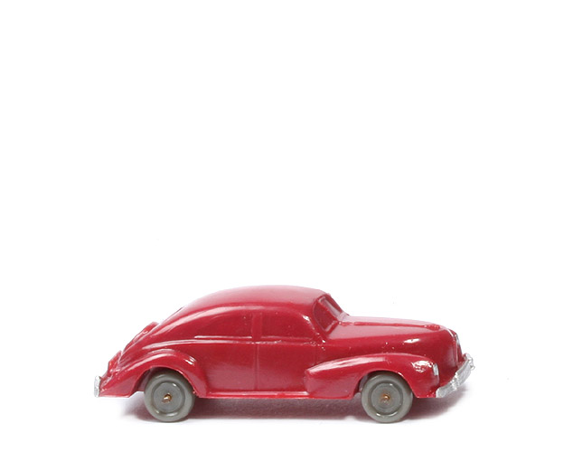 Achsen | Drahtachser | Typ | Haube gerundet ("spitz") | Farbe Karosserie | violett | Frontscheibe | geteilt | Kühlergrill | ein senkrechter Steg | hintere Stoßstange | durchgehend | Zughaken | ohne | Bodenprägung | WM Germany | Bemalung Scheinwerfer | silbern | Bemalung Kennzeichen vorne | silbern | Bemalung Stoßstange vorne | silbern | Bemalung Rückleuchten | ohne | Bemalung Kennzeichen hinten | ohne | Bemalung Stoßstange hinten | silbern | Räder Typ | Nabe flach | Räder Farbe | staubgrau |