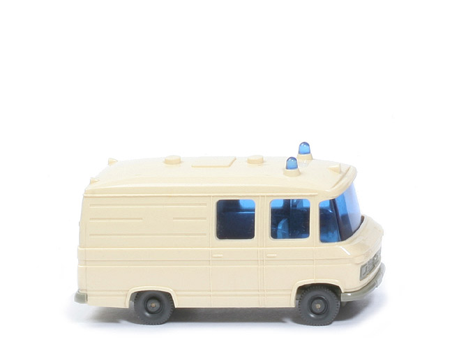 Farbe Karosserie | creme | Fanfaren | ohne | Blaulichter | 2, oben gerundet | Scheibenwischer, Spiegel | ohne | Verglasung | blautransparent | Inneneinrichtung | ohne Lenkrad, 2 Sitze | Armaturenbrett | ohne | Inneneinrichtung Transportraum | ohne | Farbe Chassis und Grill | zementgrau | Platte zur Achshalterung | zementgrau | Bodenprägung | Wiking Germany 27 | Bemalung | ohne | Beschriftung | ohne | Räder | anthrazit, 8 mm |