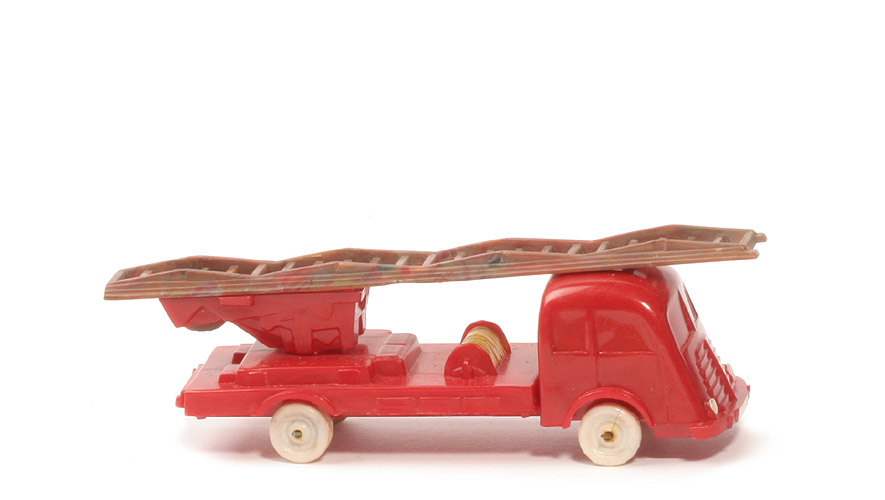 Achsen | Drahtachser | Farbe Kabine u. Chassis | rot | Bemalung Kabine | Scheinwerfer, Kennzeichen weiß | Version Chassis | ohne Schlitz | Bodenprägung | WM | Aufbau | rot | integrierte Schlauchhaspel | hellgelb bemalt | Drehkranz | rot | Leiter | einteilig, misch-braun, eingesteckt | Räder | 9mm, weiß |