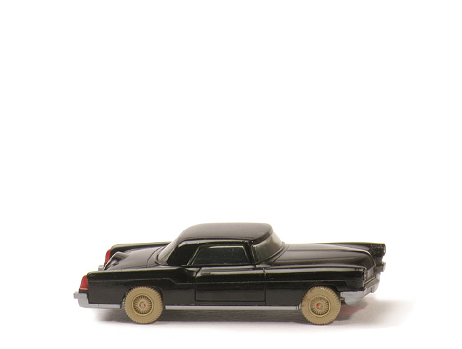 | Farbe | schwarz | | Karosserie-Typ | Form 1 | | Verglasung | gering getönt | | Befestigung der Verglasung | geklebt | | Inneneinrichtung | (immer) ohne | | Chassisfarbe | silbern | | Chassis Typ | Version 1 | | Bodenprägung | WIKING | | Befestigung kl. Chassisplatte | kleine Pass-Stifte | | Stützen für Verglasung | ohne | | Zughaken | ohne | | Chassis Form-Nummer | 1 | | Bemalung Scheinwerfer | silber | | Bemalung Grill | silber | | Bemalung Rückleuchten | rot | | Räder Art | frühe Riffelkappe 1b | | Räder Farbe | hellgrau vergilbt, ungesilbert |
