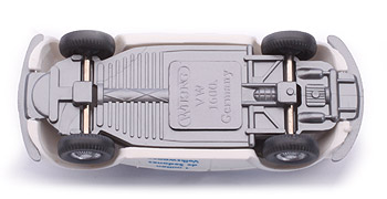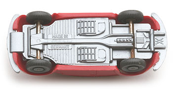 Beim siebten Chassis gibt es vor der Hinterachse kleine Haltestifte. Sonst weiterhin die schön detaillierte Bodenplatte mit Bodenprägung WM und Made in Germany.