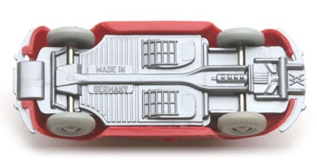 Beim sechsten Chassis gibt keine Stoßstangenhörner mehr. Sonst weiterhin die schön detaillierte Bodenplatte. Bodenprägung WM und Made in Germany. Vor der Hinterachse noch ohne Haltestifte wie bei der Version 7.