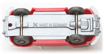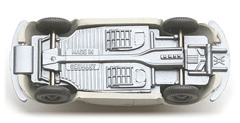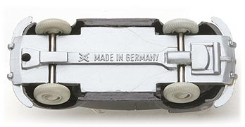 Beim fünften Chassis gibt es Stoßstangenhörner und eine schön detaillierte Bodenplatte. Bodenprägung WM und Made in Germany.