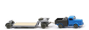 Bei dieser Variante für die verglasten Kabinen war das Chassis vorne grade. Die Bodenprägung (WM ohne Kreis) war mitten unter dem Chassis. Achshalterungen geschlossen, keine Rückleuchten.