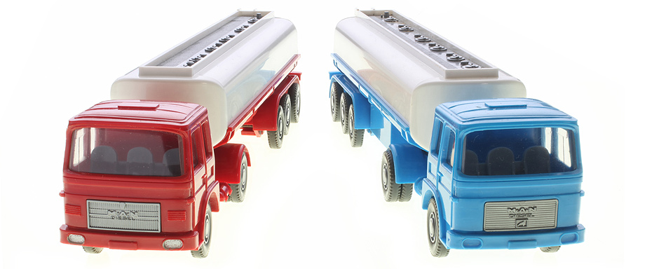 Besondere MAN Tanksattel - Auflieger mit runden Kotflügeln: rot und lichtblau. schaue auch nach "MAN 19.230 ff" in anderen Galeriebildern23.01.2011  >xl