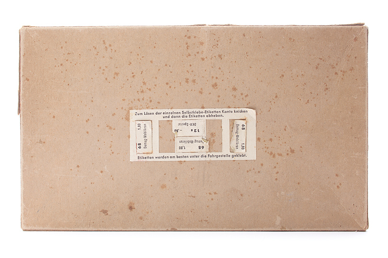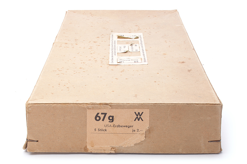 Den Erdbeweger dab es von 1960 bis 1965 - stets unter dieser Nummer und stets für diesen Preis. Dennoch ein seltener Karton. Auf dem Deckel kleben hier andere Original-Preisschilder.
