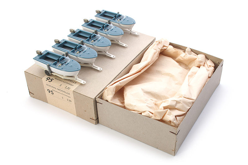 Bemerkungen: Nur 1974 kostete dieses Modell 2,20 (1973: 1,80 und 1975: 2,50). Somit klare zeitliche Zuordnung dieses Kartons. Interessant ist bei der Original-Bestückung, dass es sich um die Zwischenversion des Bootes mit Steg zwischen den Sitzen, jedoch noch ohne den Nippel handelt, die sich somit auch zeitlich genau zuordnen lässt. |