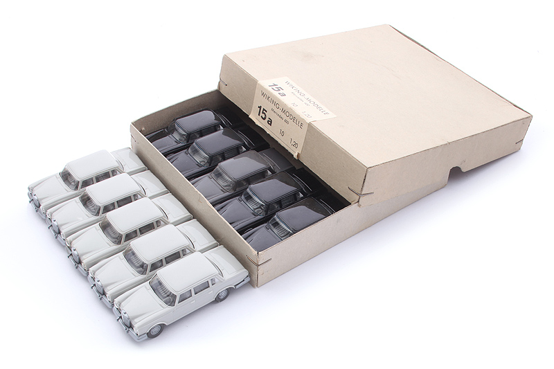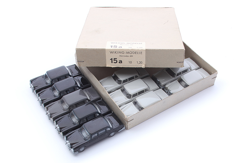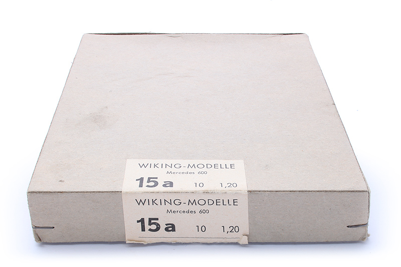 Den Mercedes 600 gab es im ersten Produktionszyklus von 1966 bis 1971. Der Preis betrug in dieser Zeit konstant DM 1,20. Ab 1976 wurde das Modell erneut aufgelegt. Dann Preis 1,80 / 1,90 / 2,00 DM. Hier also ein Karton der frühen Phase in originaler Bestückung.