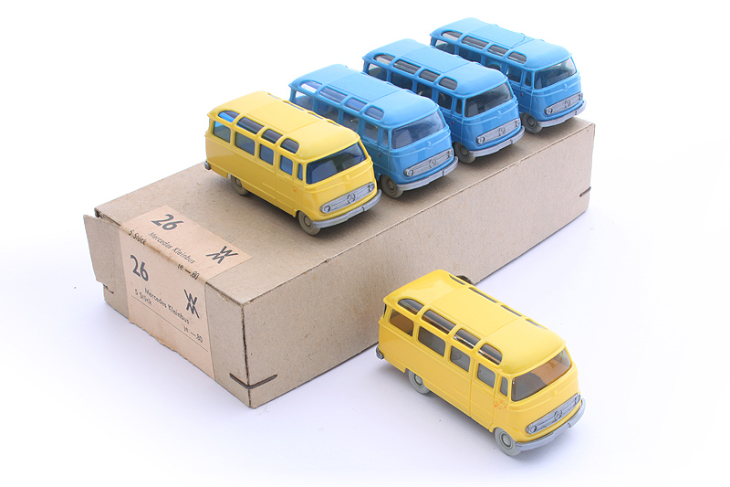 Bemerkungen: Das Auto kostete von 1959 bis 1965 --,80 DM. Die hellen Räder und die Rückleuchten-Bemalung des Original-Inhalts deuten auf eine frühe Produtuonszeit hin. |