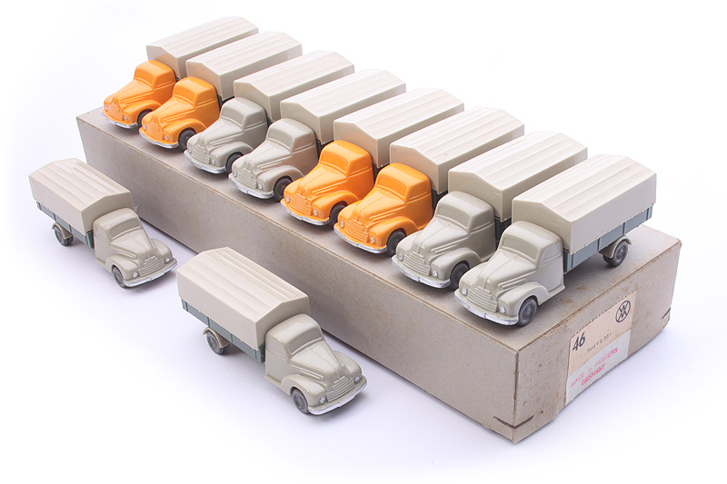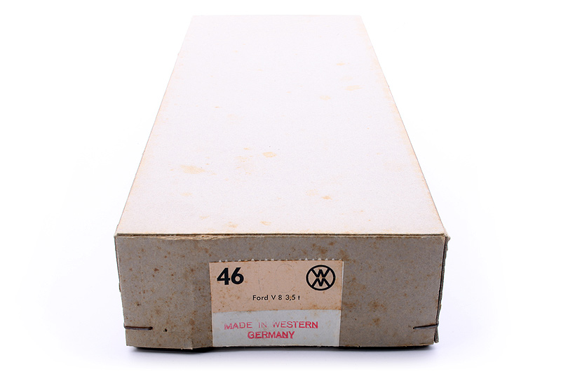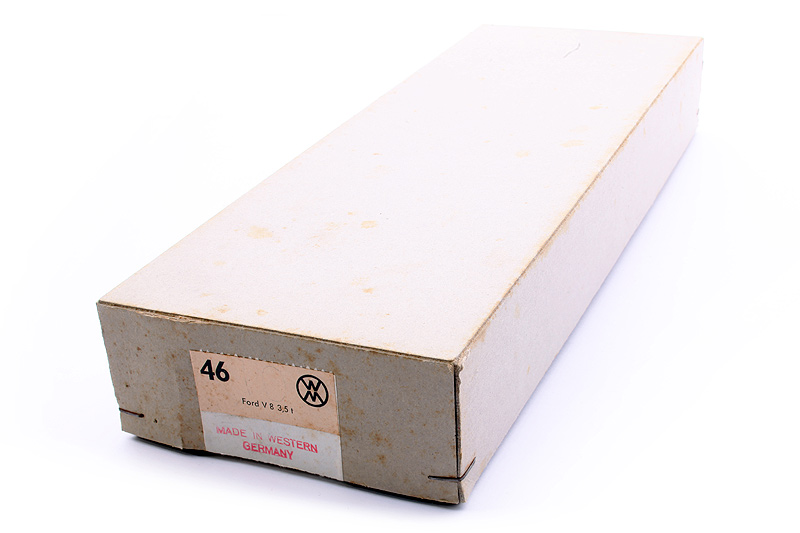 Auslandskarton ohne Preisangabe. Wohl 1957 bis 1959, da vor 1957 die Bezeichnung "T 46" lautete. Hier: nur "46" ohne "T". Allerdings gibt es in den Bildpreislisten die Bezeichnung "Ford V 8 3,5 t" nur 1952 bis 1955. Dann "LKW Ford 3500" (1956 - 1958) oder "Ford 3500" (1959).