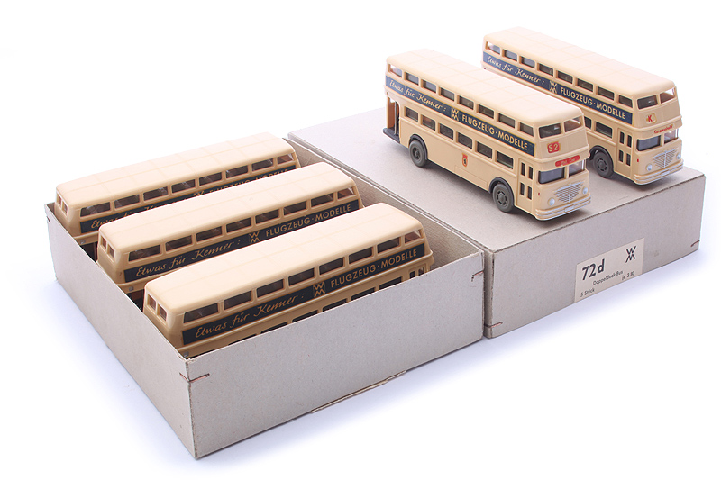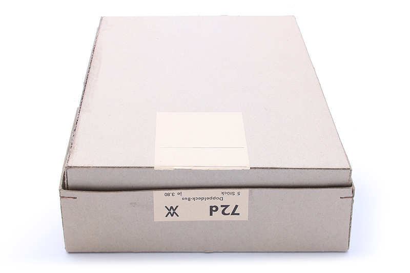 Bemerkungen: Von 1959 bis 1962 für den ziemlich hohen Preis von DM 3,80 per 5er - Händlerkarton verkauft. Ab 1963 wurde dieses Modell im Einzel- karton orange/weiß verkauft. Der 5er-Karton ist damit ziemlich selten. In diesen Karton gehören Modelle mit Einstieg hinten offen. |