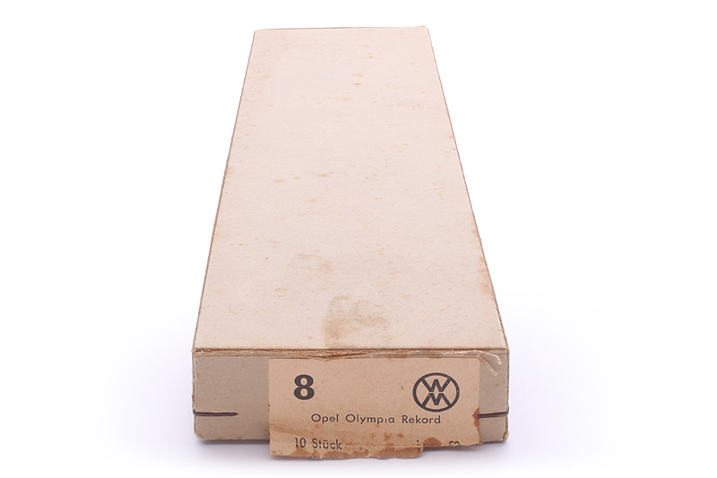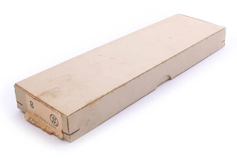 Die Modellbezeichnung "Opel Olympia Rekord" - wie auf dem Karton - gab es in der Bildpreisliste nur 1955 bis 1957. 1958 hieß es "Opel-Rekord" und 1959 dann "Opel Rekord 54". Der Preis blieb über die gesamte Produktionszeit von 1955 bis 1959 mit --,50 DM konstant.