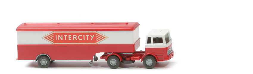 für großen Königsbolzen , Räder: 12mm, Profil fein, Felgen: silbergrau, Beschriftung Kabine: ohne, Auflieger Kofferdach: rot, Koffer oben: weiß, Koffer unten: rot, Türen: rot, neu, Rückleuchten: