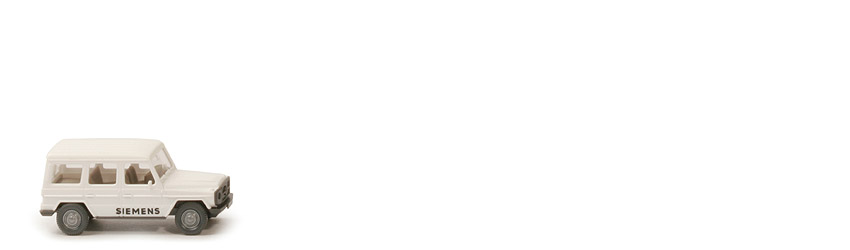 Farbe Karosserie: weiß, Hecktür: 2-teilig, Reserverad: ohne, Grill: Teil des Chassis, Verglasung: klar, Dach: separat aufgesetzt, Inneneinrichtung: ca. graubeige, Chassis Farbe: basaltgrau, Bodenprägung: WIKING - Berlin-W, Zughaken: ohne, Druck Fahrerseite: "Siemens", Druck Beifahrerseite: "Siemens", Räder: 9 mm, Radkappen: silbern, 1984