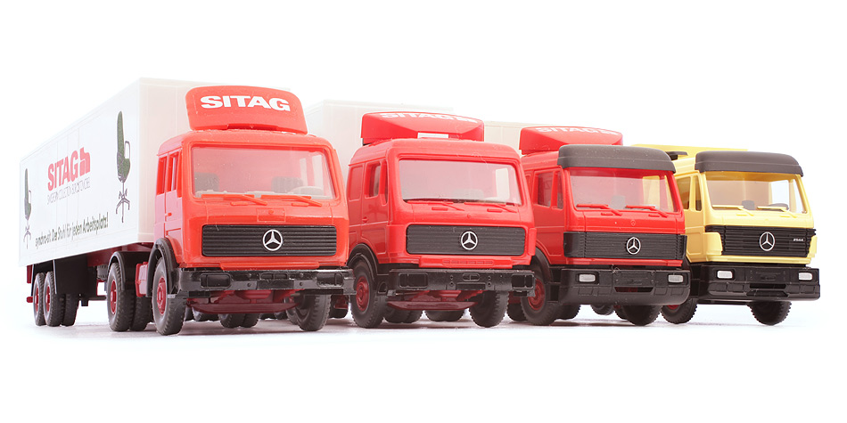 Die Modelle wurde immer weiter verbessert. Zunächst gab es sehr einfache Karosserien, bei denen die Achsen heiß eingelassen wurden. Die Räder wurden aufgesteckt und die Achsen abgeknipst. Das waren die sogenannten Drahtachser (1948 bis ca. 1954). Interessant: laut einem Zeitungbericht wurden 1954 bereits monatlich 150.000 Modelle gefertigt. In weiterer Entwicklung gab es Achshalterungen, die ein Drehen der Achsen ermöglichte. Diese Modelle - noch ohne klare Verglasung - werden als Rollachser bezeichnet. Schließlich ab 1958 erhielten die Autos eine transparente Verglasung - damit begann die ära der verglasten Modelle. Zunehmend wurden von WIKING auch Industriemodelle produziert. Diese sogenanten Werbemodelle waren nicht im Spielwarenhandel zu bekommen.