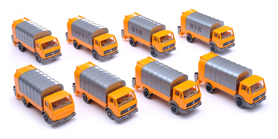 Die Modelle wurde immer weiter verbessert. Zunächst gab es sehr einfache Karosserien, bei denen die Achsen heiß eingelassen wurden. Die Räder wurden aufgesteckt und die Achsen abgeknipst. Das waren die sogenannten Drahtachser (1948 bis ca. 1954). Interessant: laut einem Zeitungbericht wurden 1954 bereits monatlich 150.000 Modelle gefertigt. In weiterer Entwicklung gab es Achshalterungen, die ein Drehen der Achsen ermöglichte. Diese Modelle - noch ohne klare Verglasung - werden als Rollachser bezeichnet. Schließlich ab 1958 erhielten die Autos eine transparente Verglasung - damit begann die ära der verglasten Modelle. Zunehmend wurden von WIKING auch Industriemodelle produziert. Diese sogenanten Werbemodelle waren nicht im Spielwarenhandel zu bekommen.
