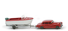 | GK: 2140/2 | CS: 1190/1 | Mercedes 300 | Geschenkpackung Motorboot - grünlichbeige, Boot graublau/weiß | 1965 | - 1968 |
