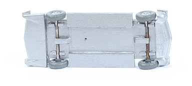 3.4. Chassis mit Zughaken, kleine Chassisplatte mit Bodenprägung WM 21 Germany und großen Pass-Stiften. Räder: Standard-Riffelkappe. Karosserieform 1 beschädigt. Verglasung auf 3 Stützen des Chassis. Grill ungesilbert. Rückleuchten unbemalt.