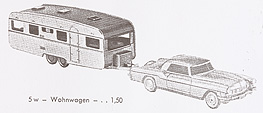 Auf den Bildern wurde das Modell ohne Türgriffe gezeigt - sie sind wohl der Retusche zum Opfer gefallen. Bis 1971 wurde das Modell mit den alten Rädern und ohne Zughaken abgebildet. Dies, obgleich mit Einführung des großen Wohnwagens 1968 ein farblich abgesetzter Hinweis zum Modell geschrieben wurde: "mit Zughaken für 5w".